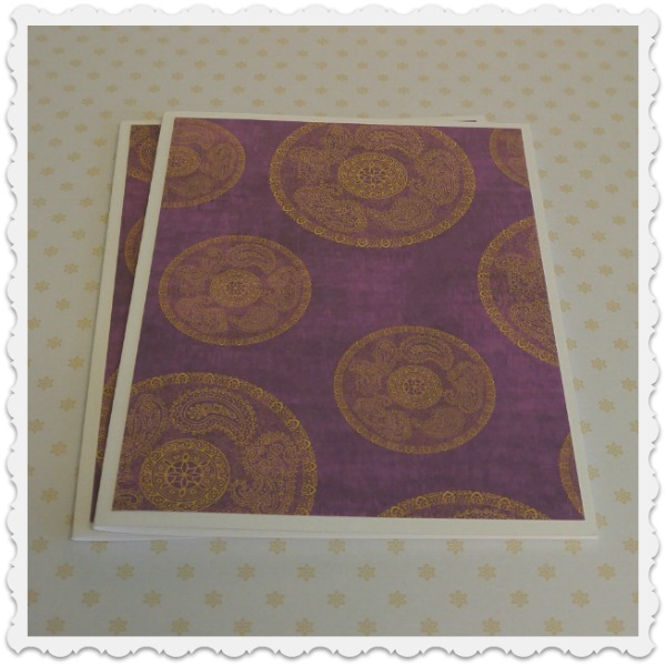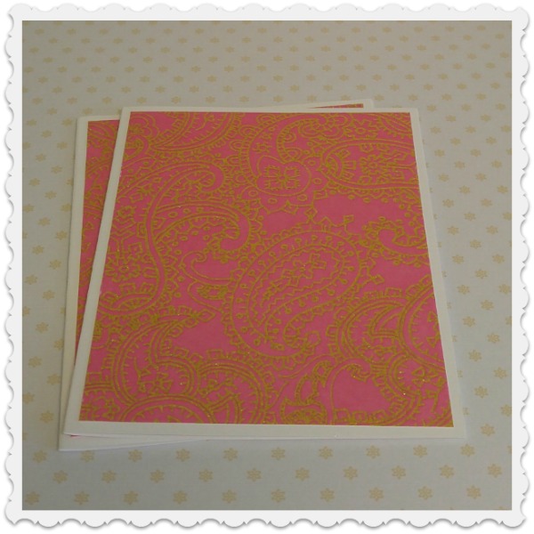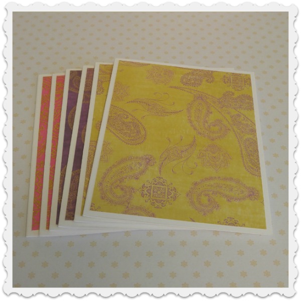 6 cartes format moyen, faites de papier cartonné blanc et à motif.